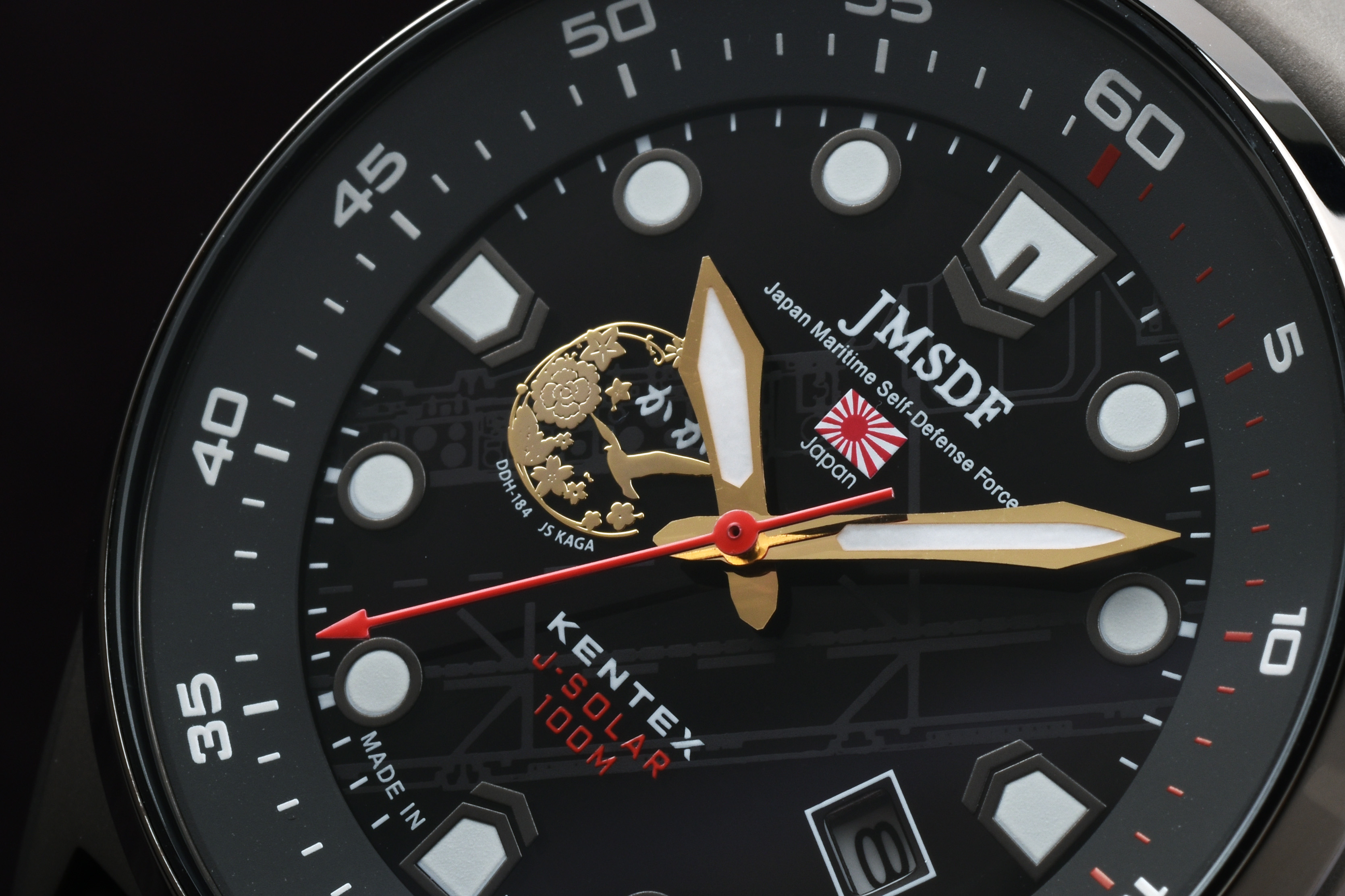 海上自衛隊の護衛艦「かが(DDH-184)」の要素を取り入れた特別仕様の腕時計が、KENTEXより限定99本で登場。
